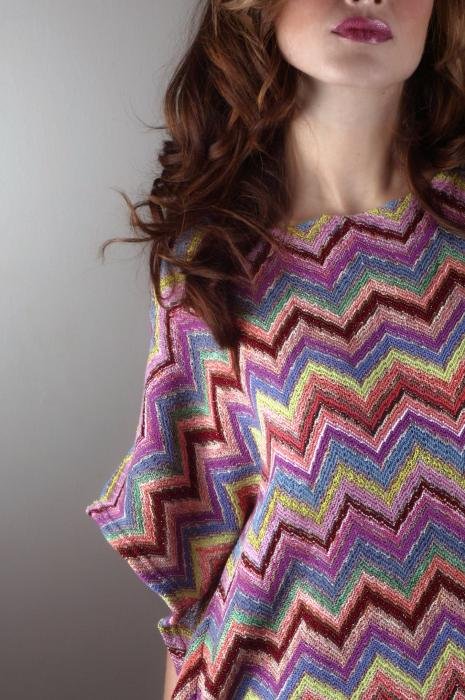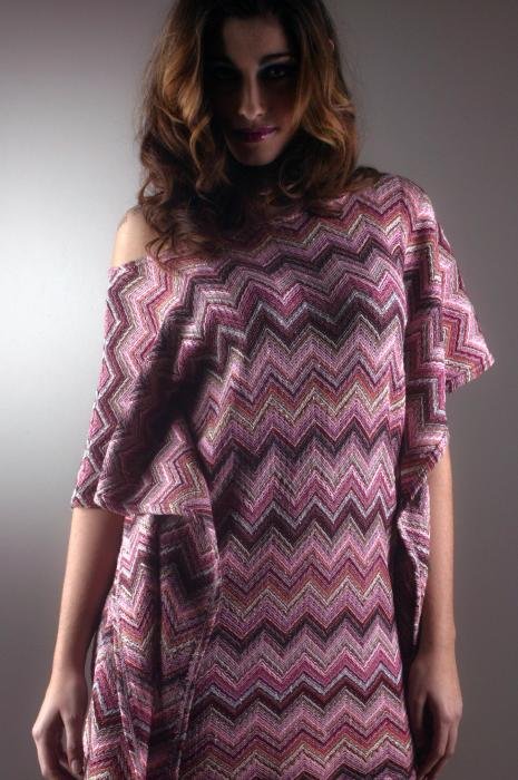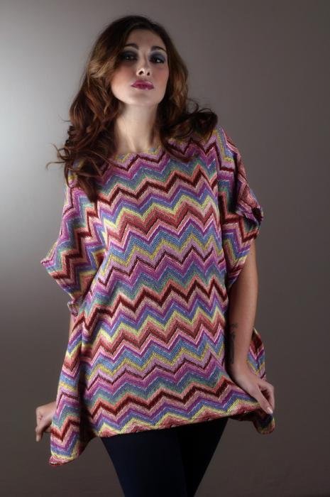 Modello dalle ampie maniche da lasciar cadere lungo le braccia o da appoggiare sulle spalle per creare uno splendido effetto cromatico.