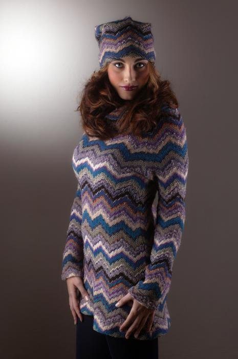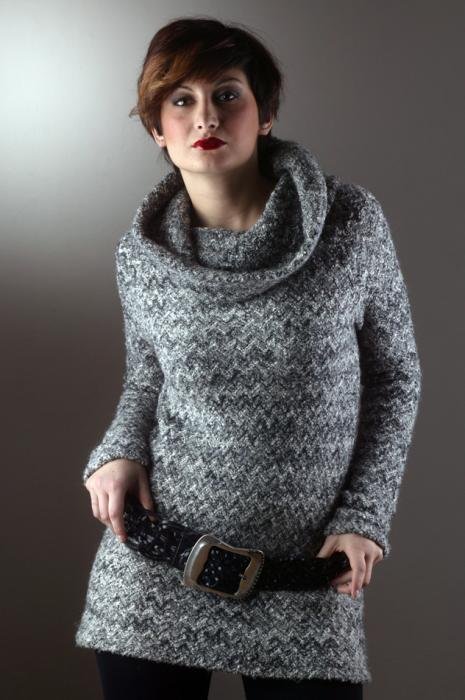 A figure-hugging dress with long raglan sleeves and double neck, a dress to wear with leggings and boots to warm even the coldest winters .